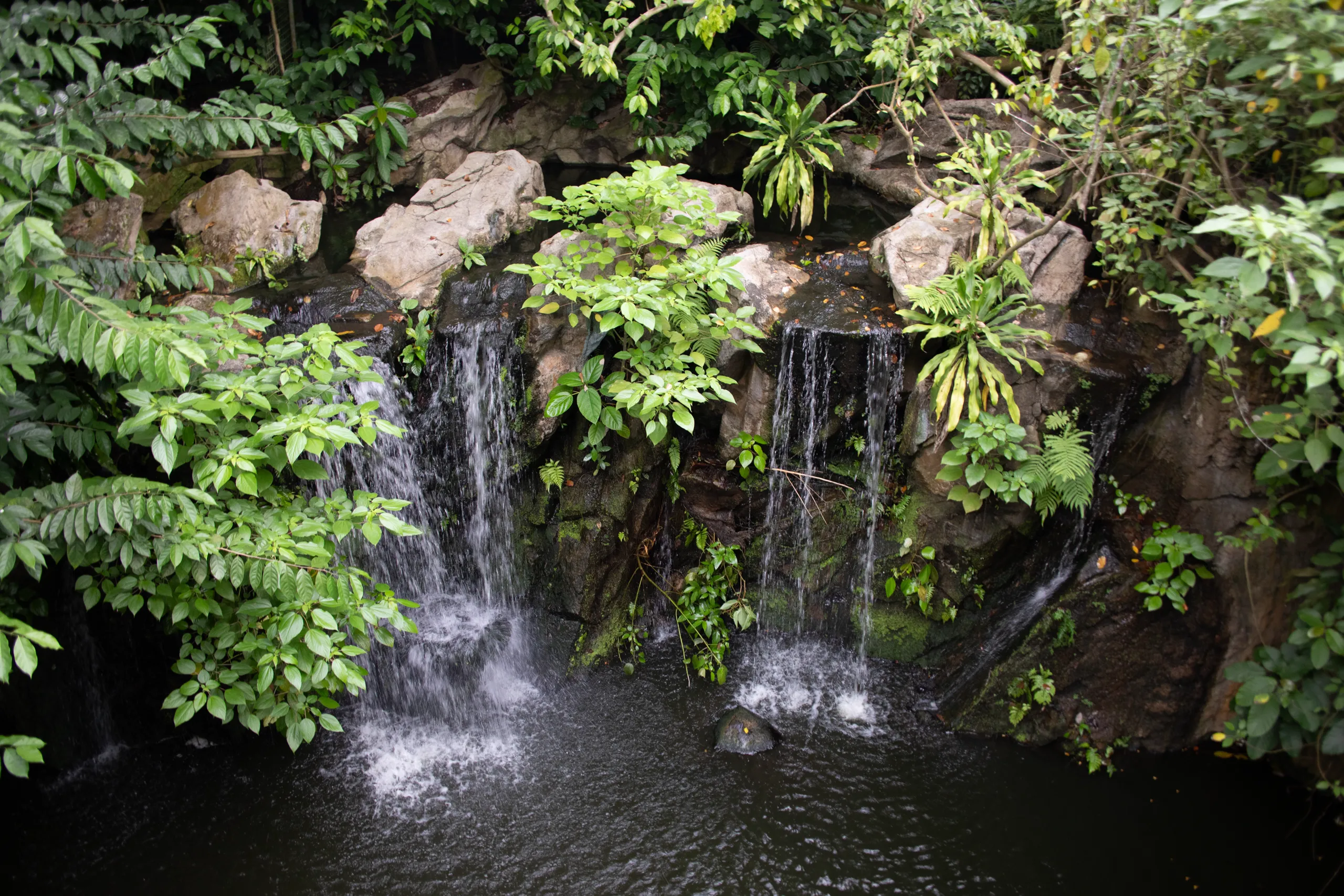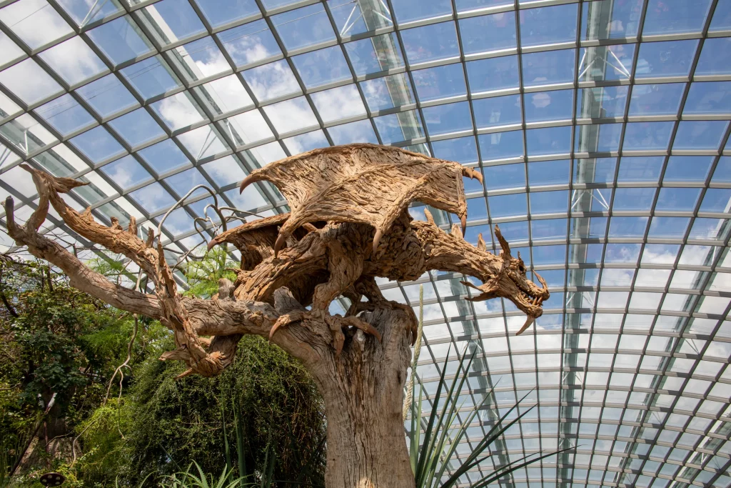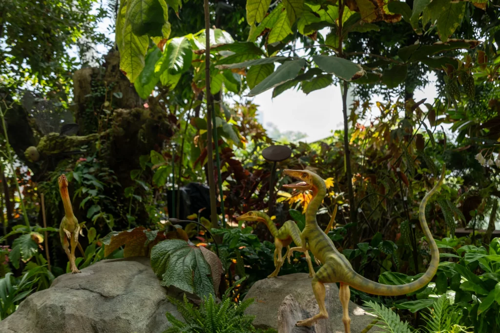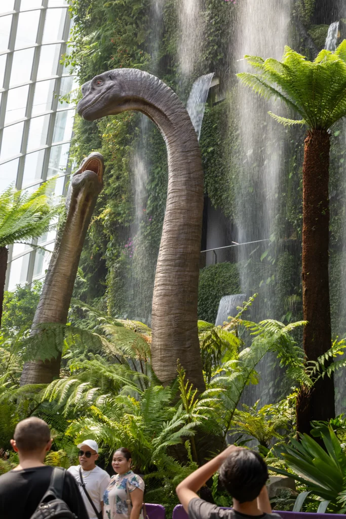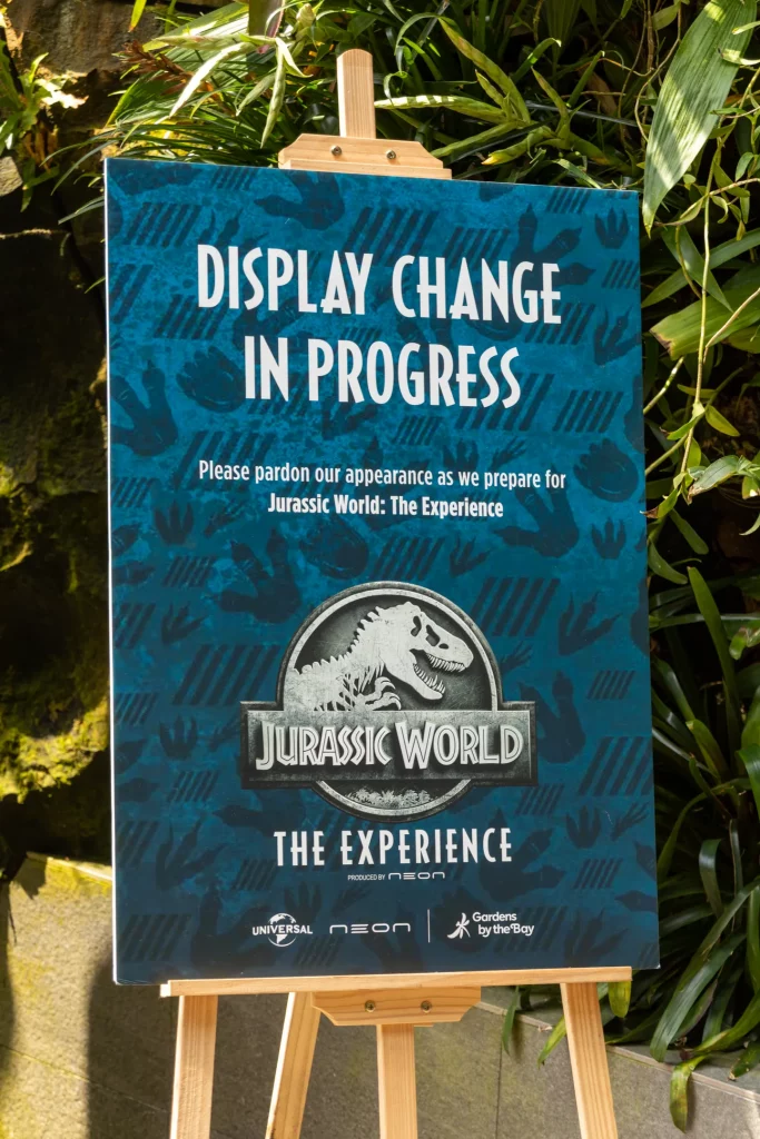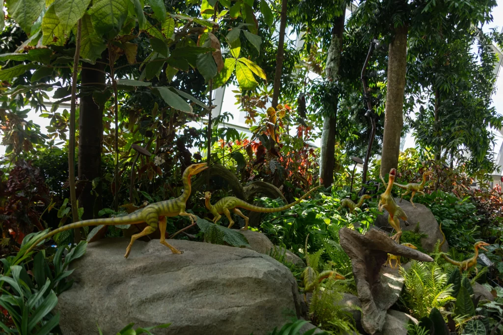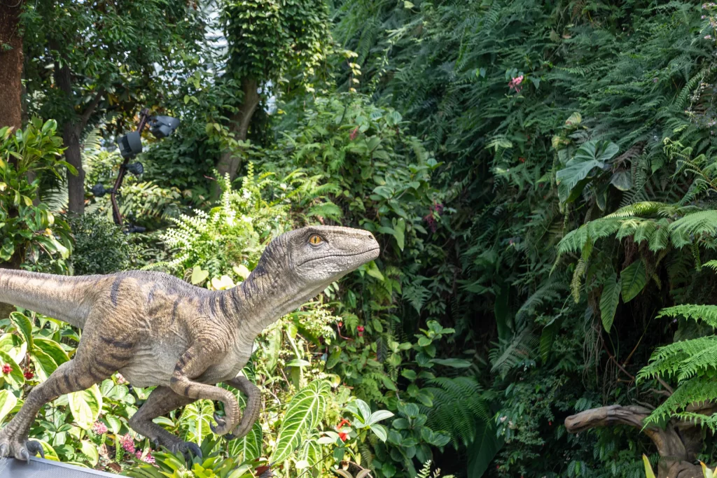 Ich sehe mir den Cloud Forest und den Flower Dome an, zwei riesige mit Glas überdachte Gartenanlagen mit toll gestalteten Gärten. Der Cloud Forest befindest sich im Umbau zu einer Dino-Themenwelt und ist kurz vor der Eröffnung, wir können also schon viel dazu sehen, auch wenn noch alles ausgeschaltet ist. Später soll vieles davon in Bewegung sein. Animatronics eben.