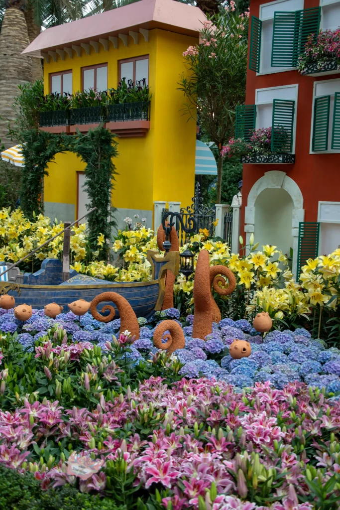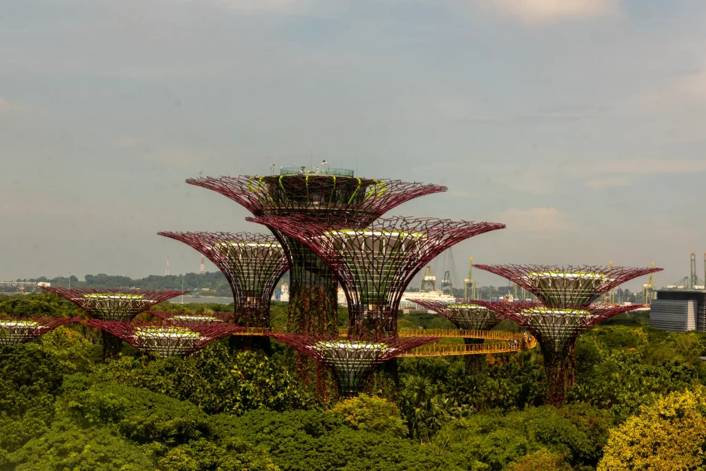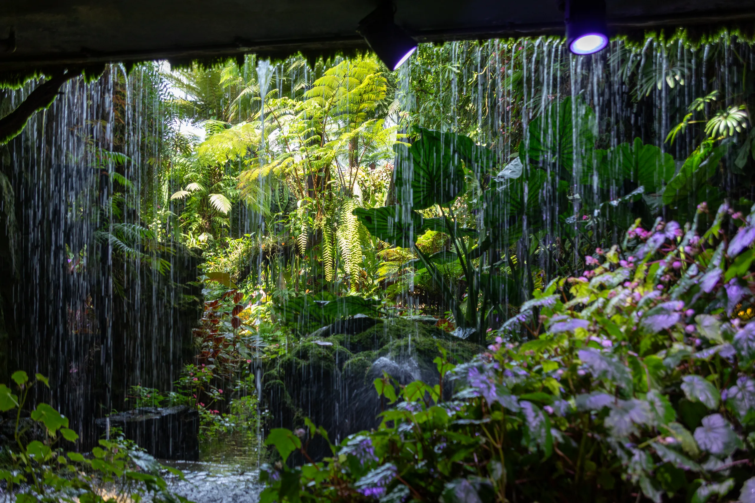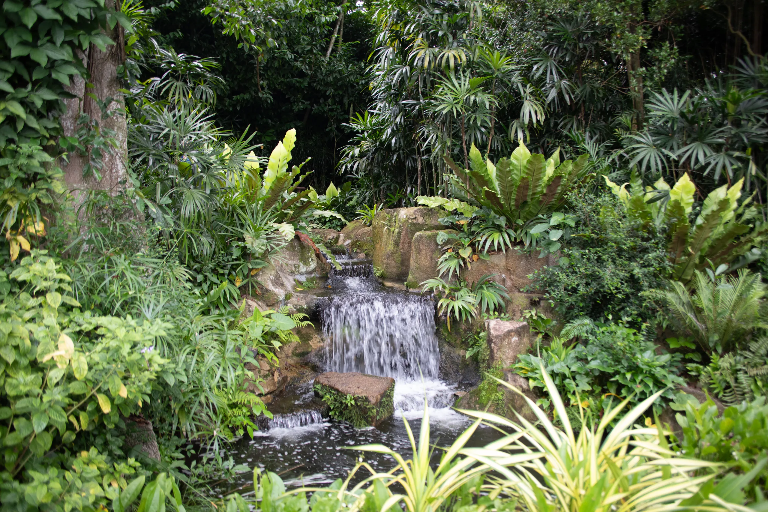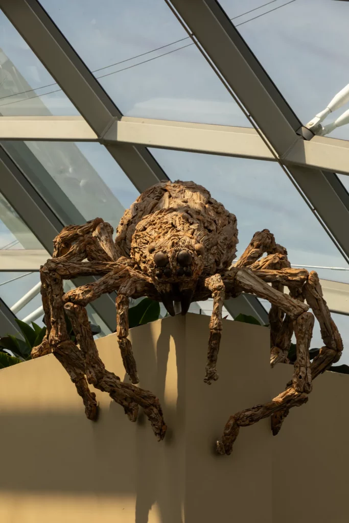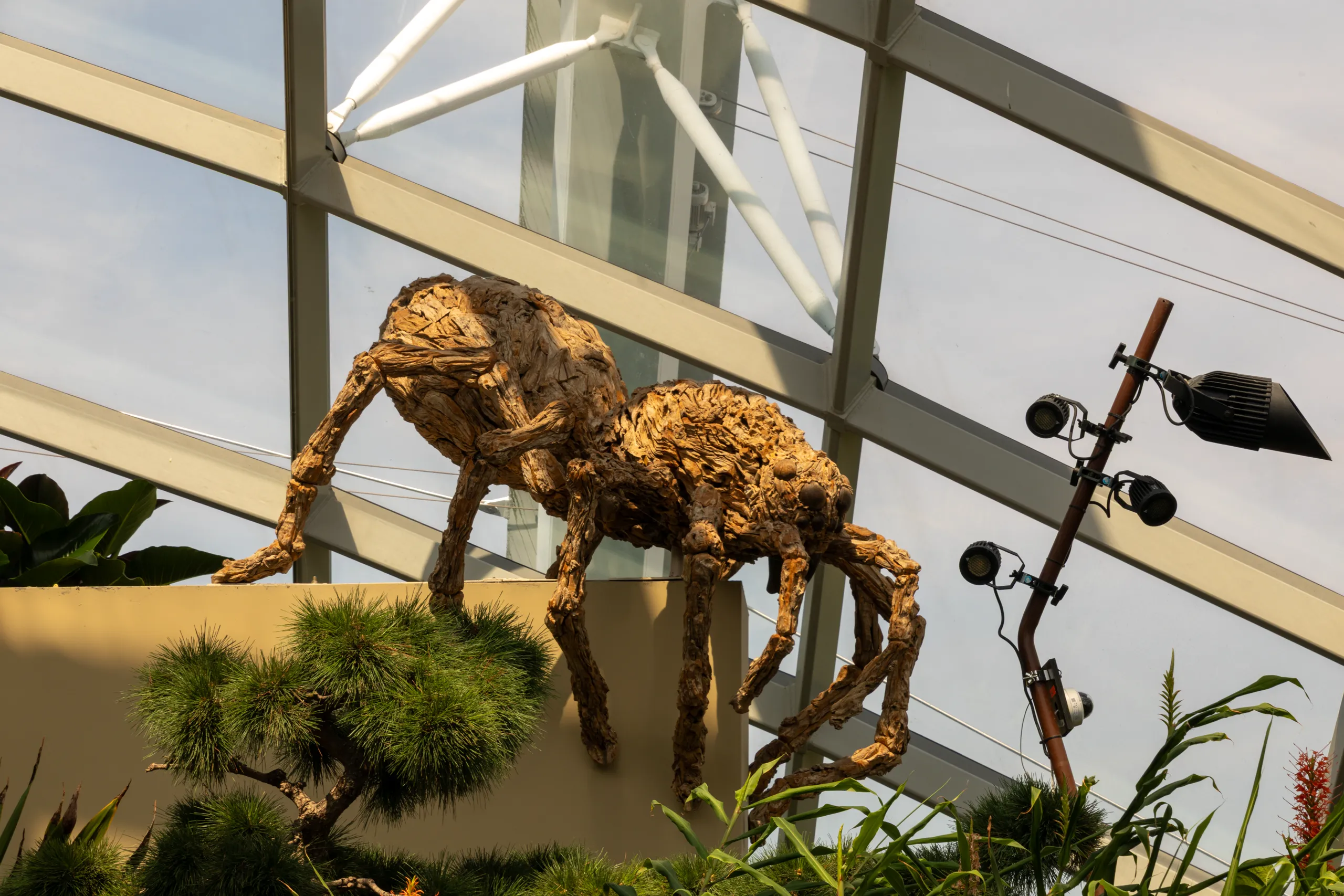 Ich sehe mir den Cloud Forest und den Flower Dome an, zwei riesige mit Glas überdachte Gartenanlagen mit toll gestalteten Gärten. Der Cloud Forest befindest sich im Umbau zu einer Dino-Themenwelt und ist kurz vor der Eröffnung, wir können also schon viel dazu sehen, auch wenn noch alles ausgeschaltet ist. Später soll vieles davon in Bewegung sein. Animatronics eben.