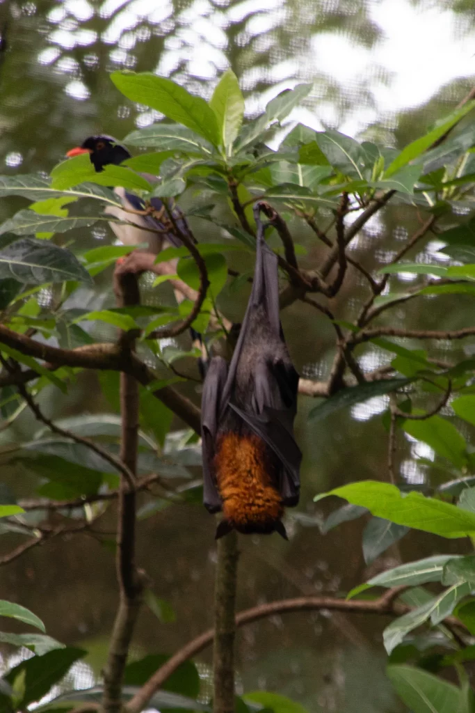 Am Abend sind wir wieder im Regenwald Entdeckungs-Zentrum, diesmal zu einem Nachtspaziergang. Hier sehen wir Tausendfüßer(Platyrhacidae), die geringfügig größer sind als die, die wir daheim so zu sehen bekommen. Skorpione und riesige Spinnen gehören ebenso zum Nachtleben wie ein Riesengleithörnchen (Taguan). Der Sunda-Plumplori, den wir zu sehen bekommen, ist die einzige giftige Primatenart. Das Gift kann auch für Menschen lebensgefährlich sein, zum Glück sind sie aber eher gemächlich unterwegs. Eine kleine Fledermaus finden wir an einem Zweig, die sich vor Räubern schützt, indem sie sich wie ein Blatt im Wind verhält.😍 Natürlich arbeite ich dort nicht mit Blitz, was sich dann entsprechend auf die Bildqualität auswirkt.