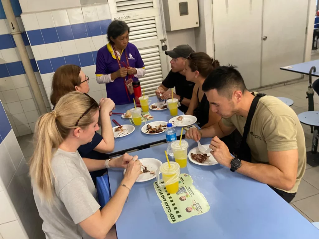 Anschließend gibt es unser Erstes Abendmahl⛧ – dabei können wir uns weiter beschnuppern. Wie ich es bei dem Mix von Leuten, die ein Forrest Valkai für so eine Reise anzieht, nicht anders erwartet habe, scheinen alle voll nett zu sein 😊 Diese Erwartungshaltung war natürlich ein entscheidendes Kriterium dafür, die Reise zu buchen. Ein wenig in Sorge war ich natürlich vorher gewesen bzgl. der rechtlichen Lage in Malaysia💀🏳️🌈. Dass ich mich dann doch dafür entschieden habe, war, dass die Scharia dort „nur“ auf Muslime angewandt wird☪, Borneo schon etwas touristischer ist, und ich ja die meiste Zeit über bei der Gruppe bleiben würde. Dabei erkenne ich natürlich an, dass die Lage für muslimische Einheimische Betroffene prekär ist. Letztendlich fühlte ich mich aber wohl und die Kontakte mit Einheimischen, die ich dort außerhalb der Gruppe hatte, waren positiv. Ich empfand die gesamte Zeit dort wesentlich angenehmer, als es zum Vergleich die Erfahrung am Flughafen Istanbul und insbesondere am Gate und im Flugzeug nach Düsseldorf zwei Jahre zuvor war, wo eine unerwartet hohe Aggression in der Luft lag und ich mich echt unsicher fühlte.